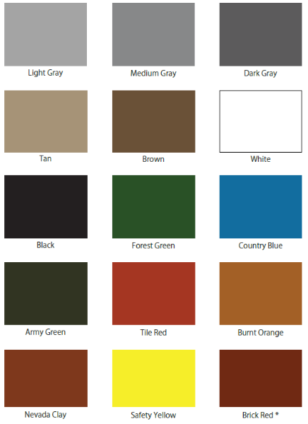 NOTE: The colors depicted on this technical document may not illustrate the exact color. Contact a technical support representative for a more accurate color sample. Custom colors availible upon request. * Novalac Only
