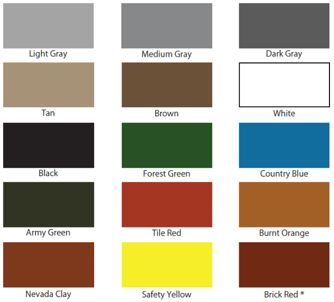 NOTE: The colors depicted on this technical document may not illustrate the exact color. Contact a technical support representative for a more accurate color sample. Custom colors availible upon request. * Novalac Only