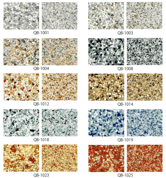 is a high build, double broadcast system using colored quartz aggregate and sealed with a protective top coat.